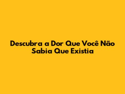 Descubra A Dor Que Você Não Sabia Que Existia