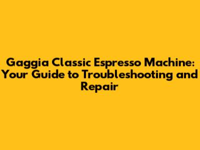 Gaggia Classic: Troubleshooting & Expert Repair Tips