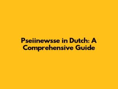 Pseiinewsse In Dutch: A Comprehensive Guide