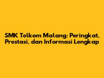 SMK Telkom Malang adalah salah satu Sekolah Menengah Kejuruan (SMK) yang sangat populer di Indonesia, khususnya di wilayah Malang, Jawa Timur. Banyak calon siswa dan orang tua yang tertarik untuk mengetahui peringkat SMK Telkom Malang serta informasi lain terkait sekolah ini. Artikel ini akan membahas secara komprehensif mengenai peringkat SMK Telkom Malang, prestasi yang telah diraih, serta berbagai informasi penting lainnya yang perlu diketahui.