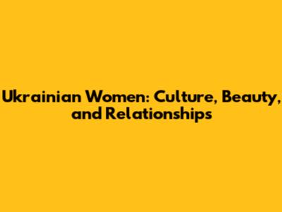 Ukrainian Women: Culture, Beauty, And Relationships