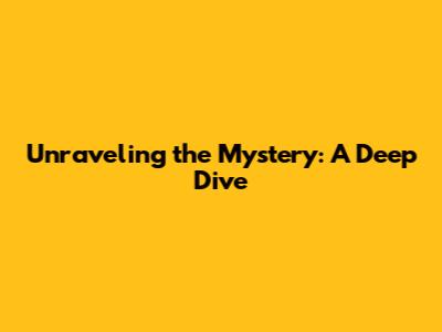 Unraveling The Mystery: A Deep Dive